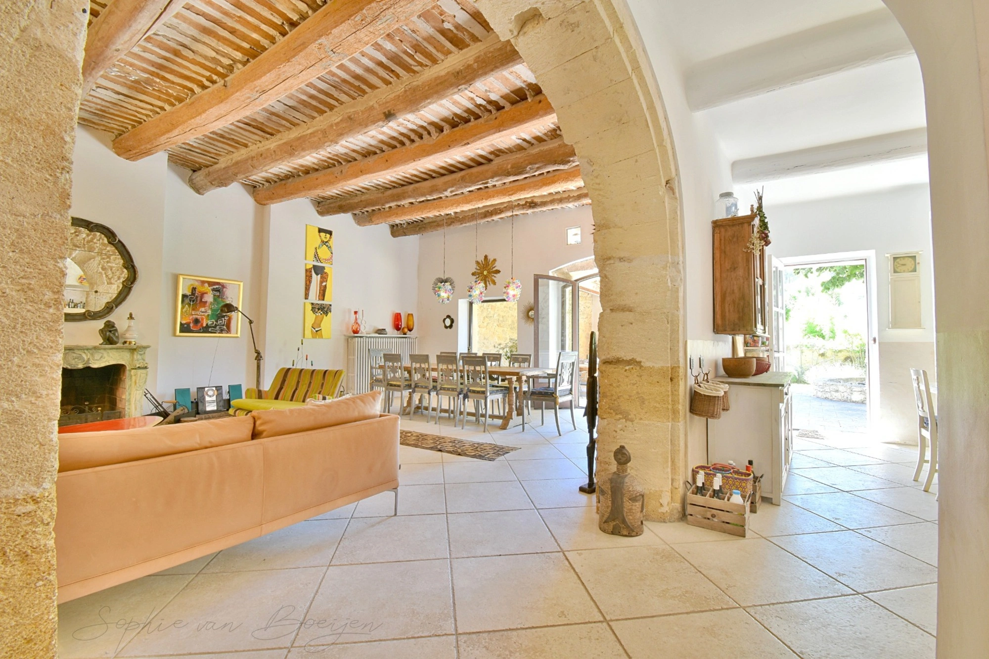 Cette maison empreinte d'histoire a été restaurée avec soin et modernité tout en respectant l'authenticité du lieu. Grandes arches en pierres, poutres et pierres apparentes, plafonds à la française, cheminées en marbre, sols en parefeuille, tomettes et carrelage ancien témoignent de son passé.